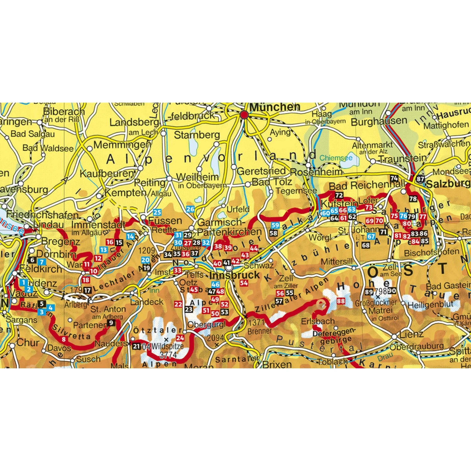 Der Schwierigkeitsgrad reicht von gesicherten Höhenwegen und »Panorama-Klettersteigen« bis hin zu steilen Sportklettersteigen. Nichts von ihrem Reiz verloren haben die großartigen Eisenwege über die höchsten Gipfel Deutschlands: Zugspitze und Watzmann. Bei neuen, meist rassigen Sportklettersteigen, zum Beispiel dem anspruchsvollen »Königsjodler« am Hochkönig und dem Pidinger Klettersteig, ist vor allem der Weg das Ziel. Auch talnahe Fun-Klettersteige wie der »Crazy Eddy« fehlen nicht. Normalwege mit kurzen gesicherten Stellen wurden dagegen bewusst ausgeklammert.