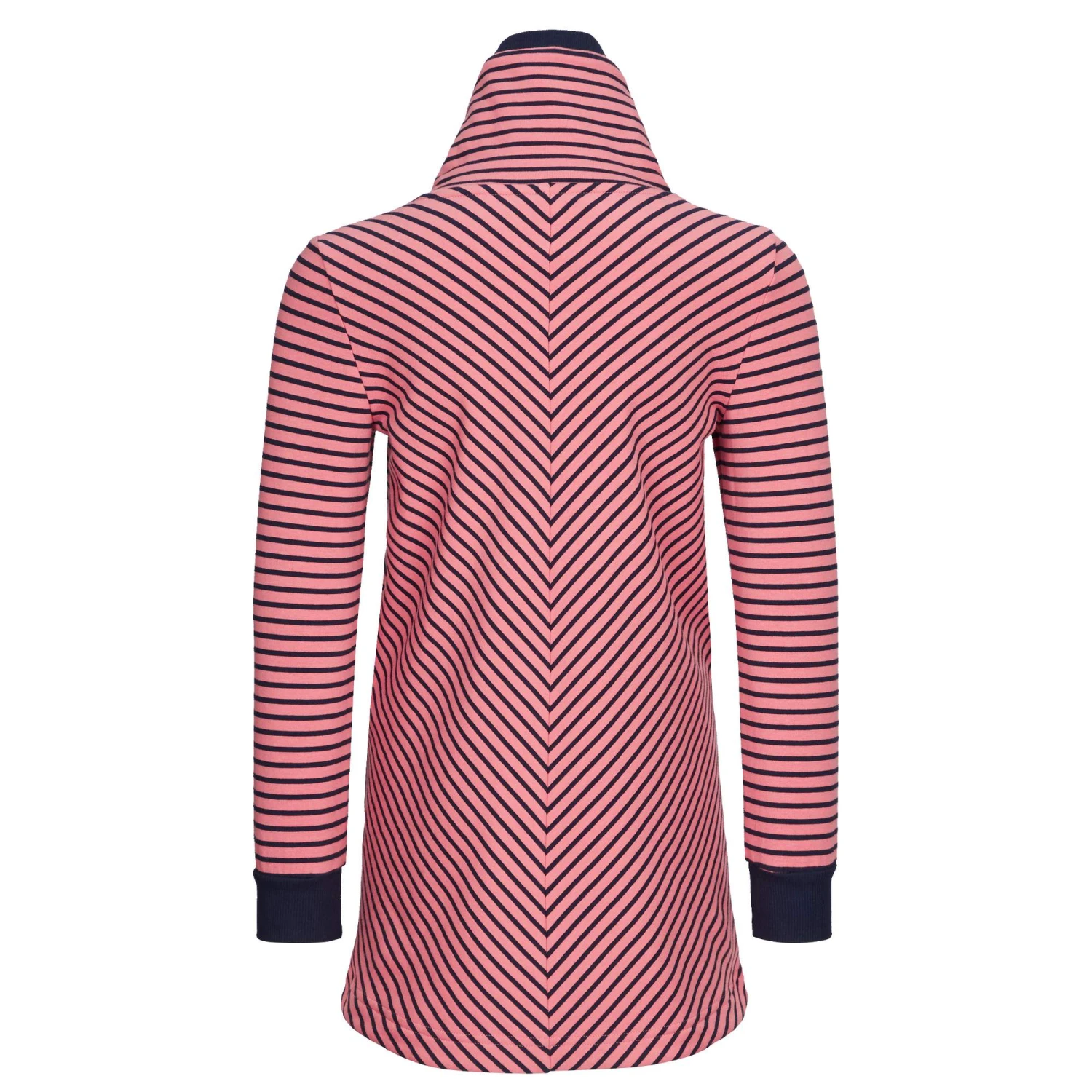 Ob Schulhof, Reise oder Familienfest – mit seiner eleganten Streifenoptik und dem kuscheligen Schalkragen kann sich das hübsche Lumikko Kleid aus weichem Bio-Baumwolljersey überall sehen lassen.