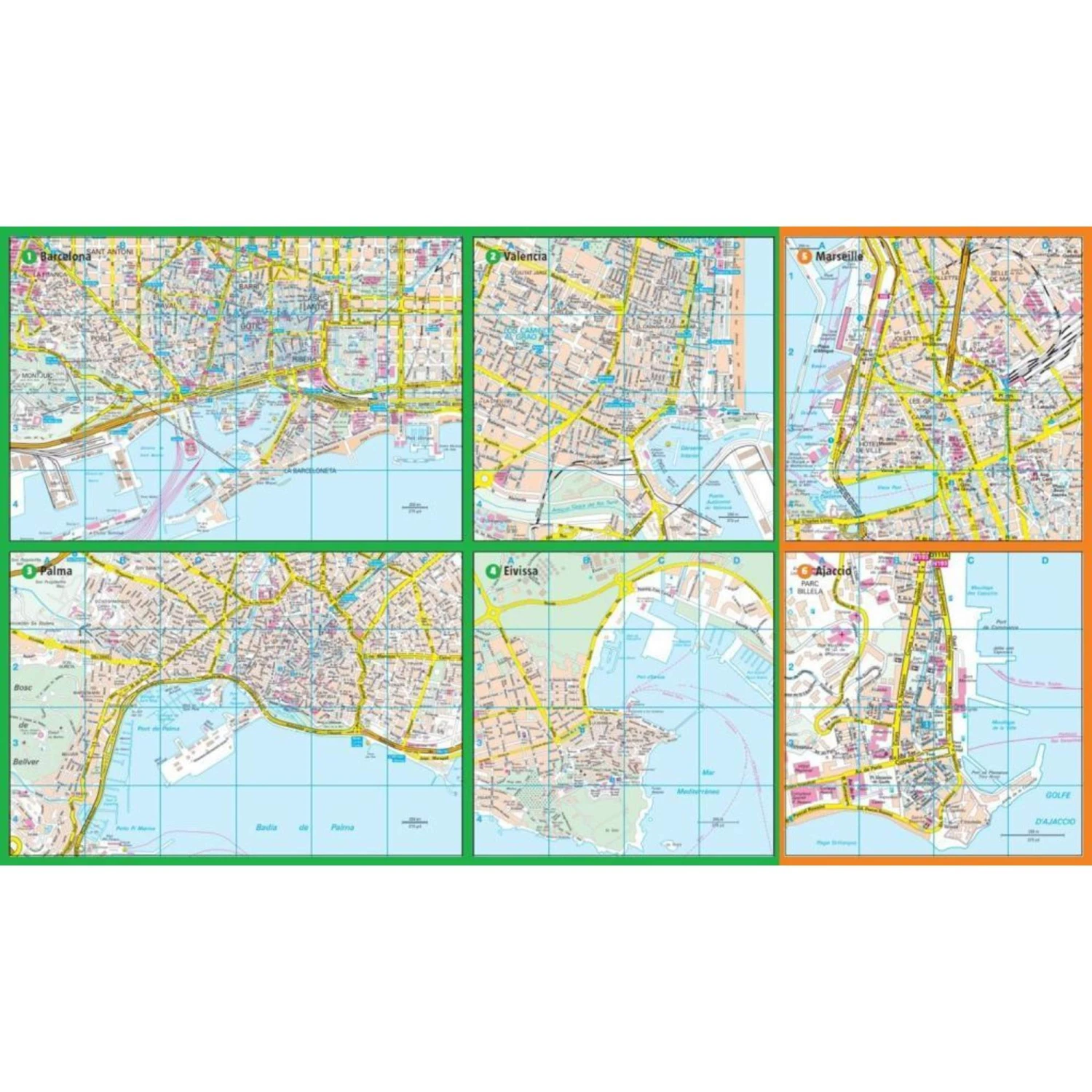 Spanien Festland (Barcelona, València, Alicante, Cartagena, Málaga, Gibraltar, Cádiz); Mallorca (Palma), Ibiza (Eivissa), Frankreich Festland (Monaco, Nizza, Cannes, Marseille), Korsika (Ajaccio), Italien (Rom, Livorno, Florenz, La Spezia, Neapel, Venedig, Ravenna, Bari), Sardinien (Cagliari), Sizilien (Palermo, Messina, Catania), Malta (Valletta), Tunesien (Tunis), Marokko (Casablanca, Tanger, Agadir, Marrakesch)