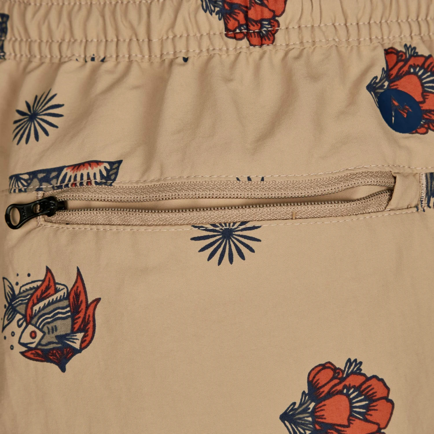 Der elastische Bund kann per Kordelzug angepasst werden. Am Gesäß befindet sich eine RV-Tasche, in der du deinen Schlüssel oder andere Kleinigkeiten sicher verstauen kannst.