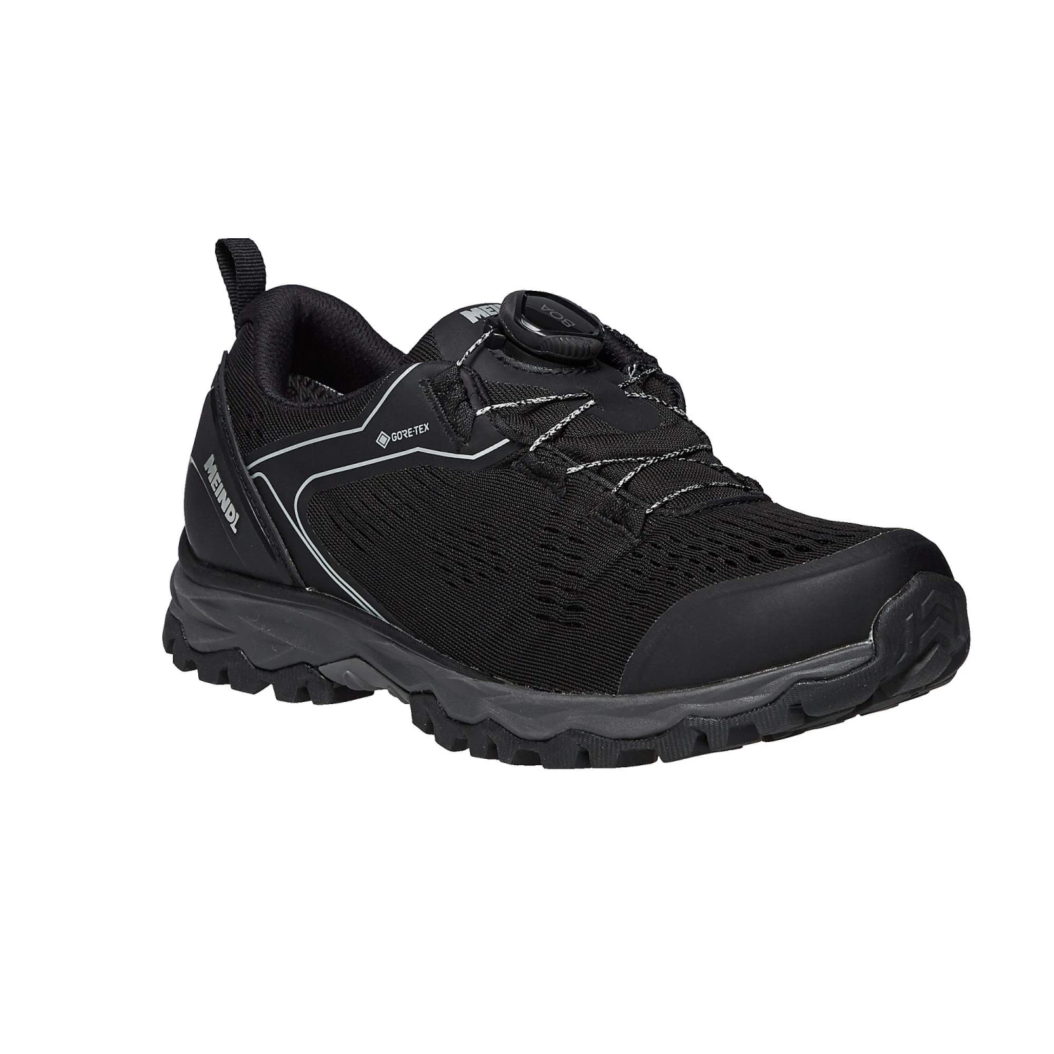 Der sportliche Wanderschuh bietet aber nicht nur im Vorfußbereich eine klasse Passform. Dank des BOA-Schnürsystems kann auch ein besonders sicherer Sitz garantiert werden. Vor allem lässt es sich besonders einfach bedienen und ist trotz des filigranen Aussehens unwahrscheinlich reißfest. Als Obermaterial kommt synthetisches Mesh-Gewebe zum Einsatz, dass neben seinem geringen Gewicht auch für eine erstklassige Atmungsaktivität sorgt. Für Wetterschutz ist der flotte Halbschuh mit einer wasserdichten Gore-Tex Membran ausgestattet.