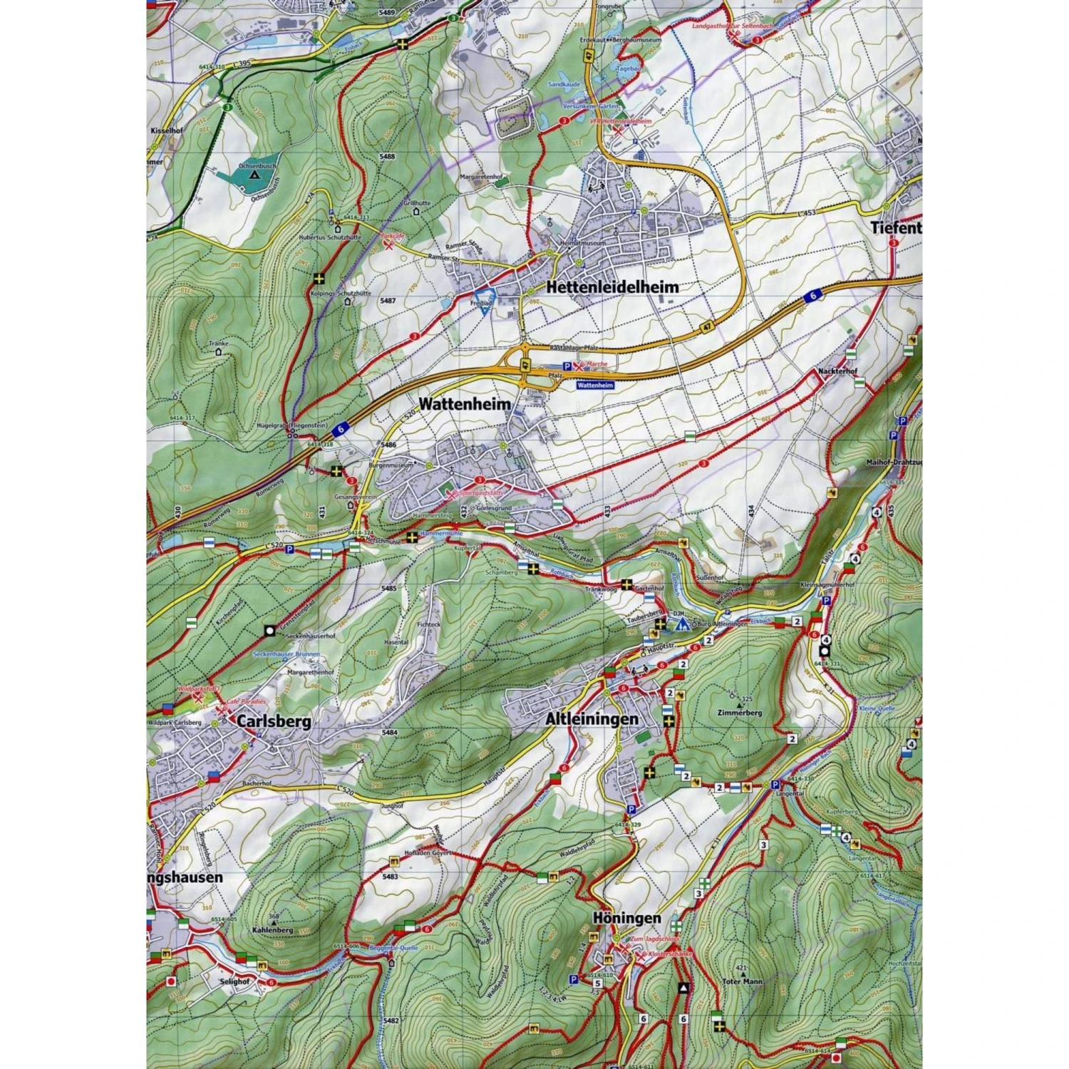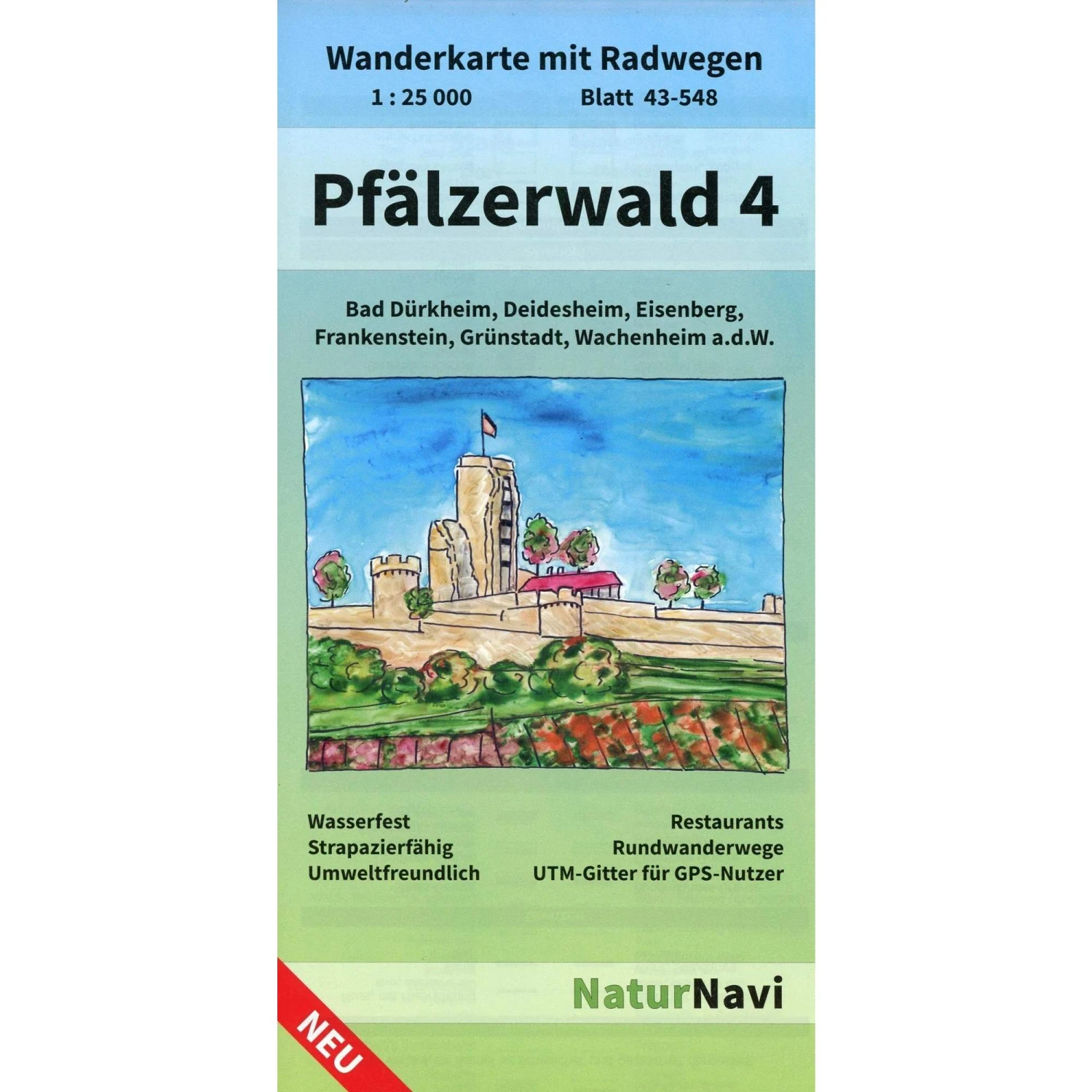 - Detaillierte Wander- und Radwege: Premiumwege, Wege des Pfälzerwald-Vereins, viele lokale Rundwege sowie Fernwege