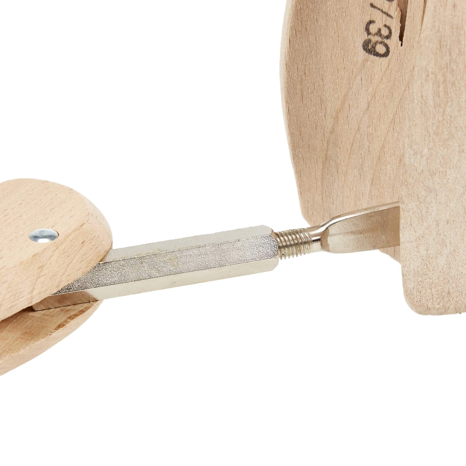 Ein solider Schuhspanner aus Holz, mit metallischem Schraubmechanismus. Am Besten direkt nach dem Tragen in den Schuh spannen. So arbeitet das Holz mit der im Schuh verbliebenen Körperwärme zusammen.