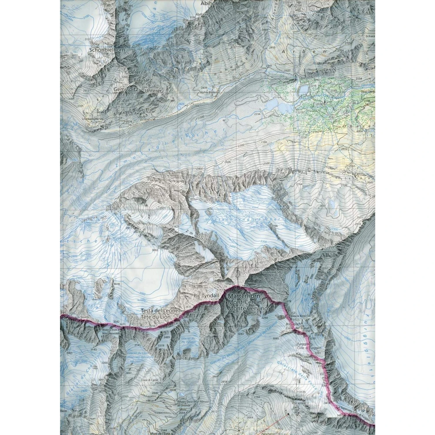 Enthaltene Orte Berge und Seen: Arolla Breuil-Cervinia Matterhorn / Monte Cervino Dent d’Hérens Mont Collon Tête de Valpelline L’Evêque Mont Brulé / Mont Braoulè Tête Blanche Pointe de Zinal Mont Miné Aiguille de la Tsa Les Jumeaux Furgggrat Becca Vannetta Becca des Lacs Lago Goillet Lago Cime Bianche Val d’arolla Valtournenche.