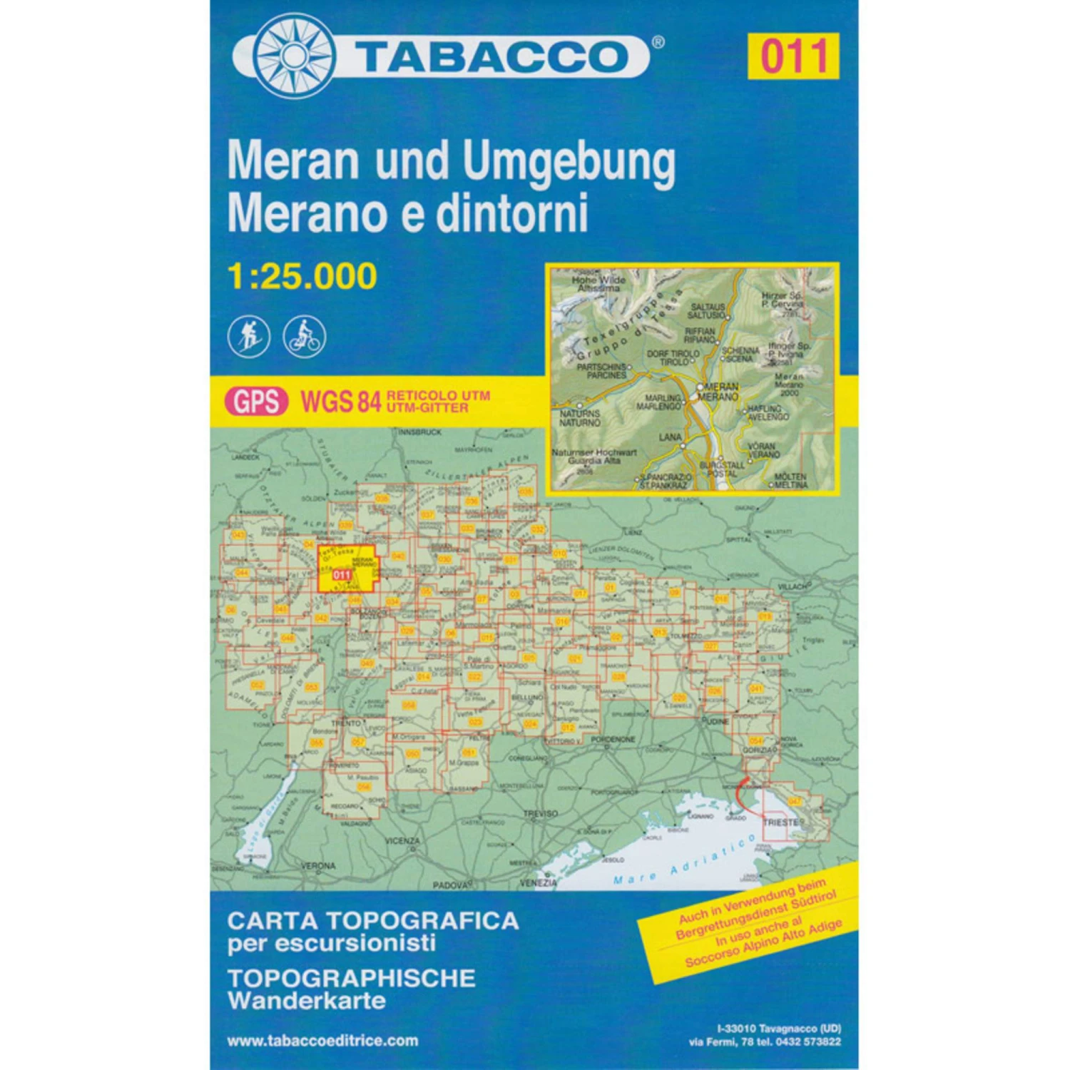 Der Verlag Casa Editrice Tabacco begann nach dem 2. Weltkrieg mit der Herstellung von topographischen Wanderkarten, die auf internationaler Ebene bei Alpinisten, Trekkern, Wanderern und Ausflüglern für ihre Präzision und Verlässlichkeit bekannt sind. Die angebotenen Karten konzentrieren sich auf den östlichen Alpenraum, und zwar vom Adamello bis zum Triestiner Karst, daher einschließlich aller Dolomiten, die von der UNESCO zum „Welterbe“ erklärt wurden.